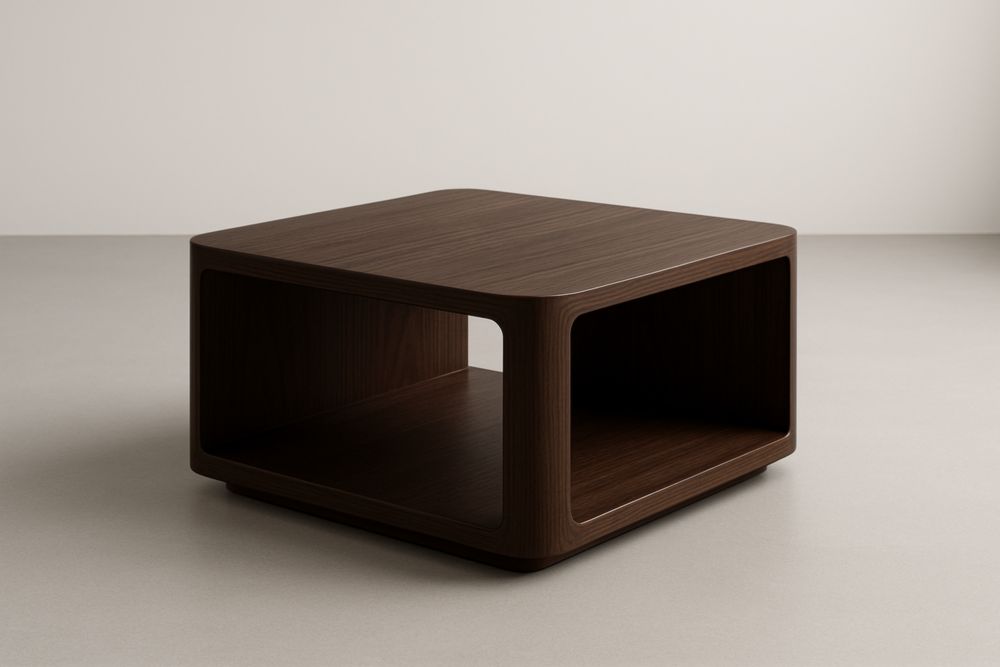 Table basse carrée en bois massif brun avec étagère intégrée 80x80x40cm