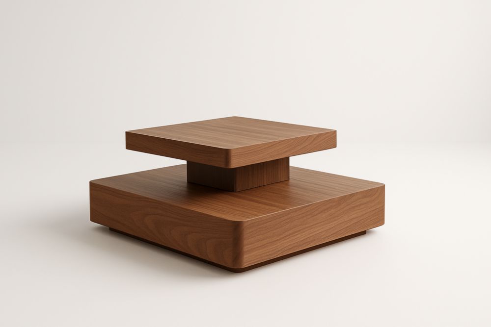 Table basse à deux niveaux en bois de noyer.