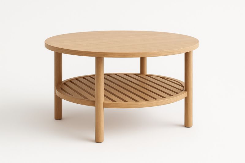 Table basse ronde en bois avec étagère